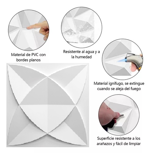 Este Panel Decorativo PVC 3D es ideal para su colocación en muros y plafones, resistente al agua y fuego, sin duda alguna le dará una nueva apariencia a tus habitaciones.El Panel es fabricado en PVC calibre 40 con materiales de la mas alta calidad, el paquete incluye 8 piezas de 50 cm x 50 cm con lo que puedes cubrir un área total de 2 metros cuadrados, cada m2 ocupa 4 Paneles.