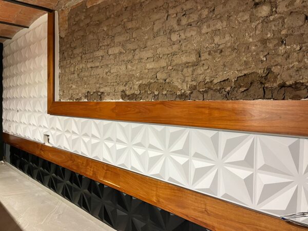Este Panel Decorativo PVC 3D es ideal para su colocación en muros y plafones, resistente al agua y fuego, sin duda alguna le dará una nueva apariencia a tus habitaciones.El Panel es fabricado en PVC calibre 40 con materiales de la mas alta calidad, el paquete incluye 8 piezas de 50 cm x 50 cm con lo que puedes cubrir un área total de 2 metros cuadrados, cada m2 ocupa 4 Paneles.